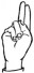 На ћирилици написано АНДРЕЈА БАДРИЋ састоји се из 13 слова [?]. Исписано ћириличном једноручном азбуком за глувонеме: